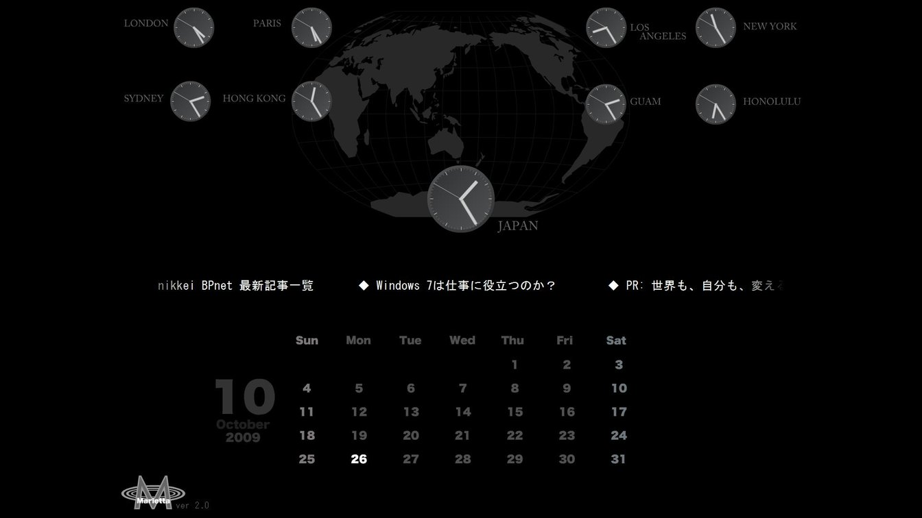 現在時刻はもちろん、世界の時刻、カレンダー、さらにはRSS配信も見ることができるという高機能型。しかしこれもこちらの環境ではry