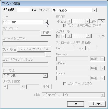 実際にさせる動作を設定するには「動作コマンド」をダブルクリック、もしくは「追加」ボタンをクリックする。すると下のようなウィンドウが出る。
