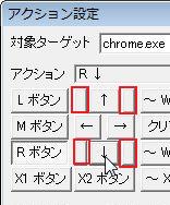 ちなみに斜め方向のジェスチャを設定したい場合は「アクション設定」のときに各矢印ボタンの付近の空白ボタン(下図の赤枠のボタン)で設定でき、表示は「┌」「┐」「┘」「└」となる。