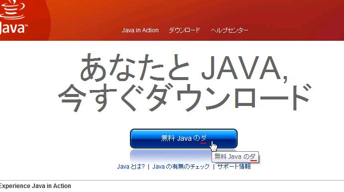 なんかJava更新的なポップアップバルーンでたからサイトにいったんだけども、ボタンの表示がどう見てもおかしい。