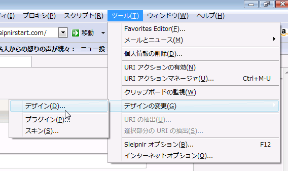 各種設定はSleipnirオプション(F12)の以下の場所から。